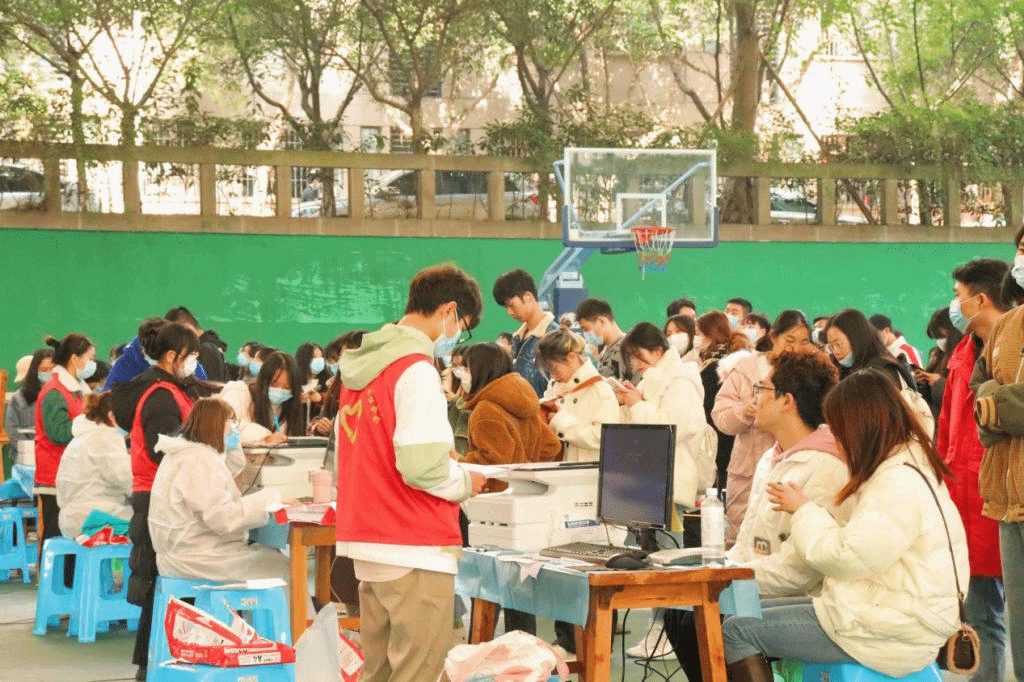 战“疫”青春,我为先锋。近期,新冠肺炎席卷重庆,疫情虽得以控制,但我校仍未放松警惕,严格按照上级疫情防控指令开展各项防疫工作。为落实疫情防控需要,筑起有效免疫屏障,经过前期协商和准备,自11月24早上8点起,我校志愿者在北校区风雨球场协助重庆市合川区合阳城街道社区卫生服务中心医务人员,为移通师生提供为期两日的新冠疫苗“加强针”接种服务。16轮值班次数、90余名志愿者、累计志愿服务时长达236小时、累计受益人数达7000余人。移通志愿者积极作为、勇敢担当,筑牢校园疫情防控网,获得师生的一致好评。
