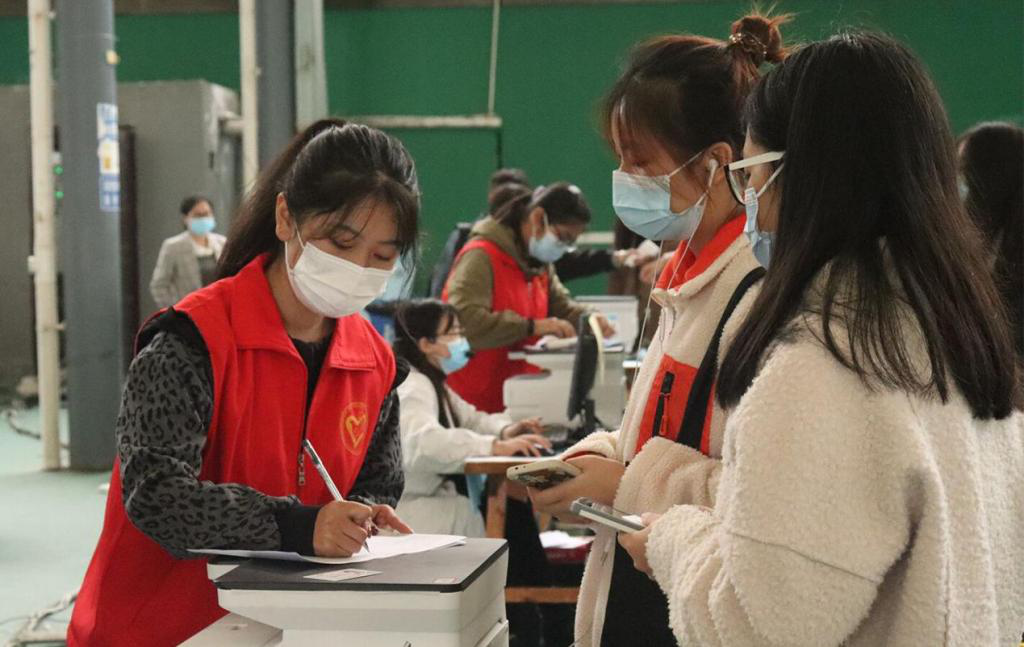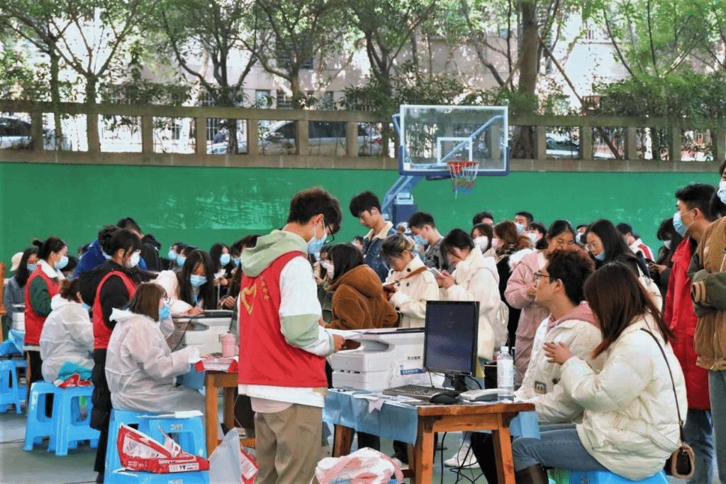 战“疫”青春,我为先锋。近期,新冠肺炎席卷重庆,疫情虽得以控制,但我校仍未放松警惕,严格按照上级疫情防控指令开展各项防疫工作。为落实疫情防控需要,筑起有效免疫屏障,经过前期协商和准备,自11月24早上8点起,我校志愿者在北校区风雨球场协助重庆市合川区合阳城街道社区卫生服务中心医务人员,为移通师生提供为期两日的新冠疫苗“加强针”接种服务。16轮值班次数、90余名志愿者、累计志愿服务时长达236小时、累计受益人数达7000余人。移通志愿者积极作为、勇敢担当,筑牢校园疫情防控网,获得师生的一致好评。