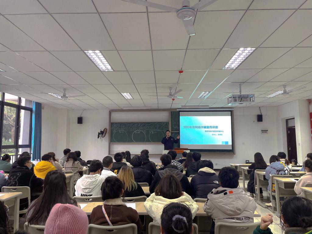 为预防我校学生遭受电信网络诈骗,提升我校学子的反诈防诈意识和能力,牢筑移通网络诈骗“防护墙”,营造校园反诈骗氛围,远景学院于11月17日特邀请重庆市合川区公安局刑警支队新型犯罪侦查大队副大队长吴爽铭警官来到学院进行高校大学生预防电信网络诈骗主题宣讲。