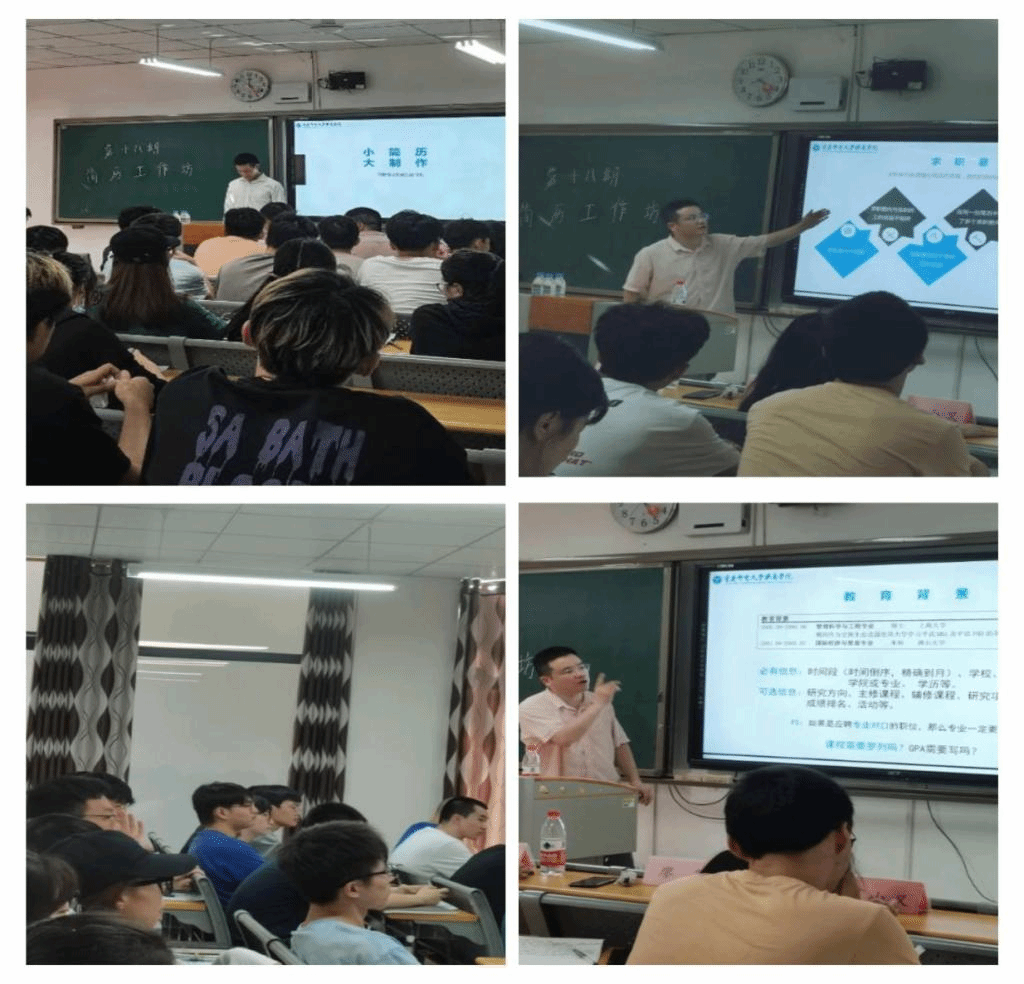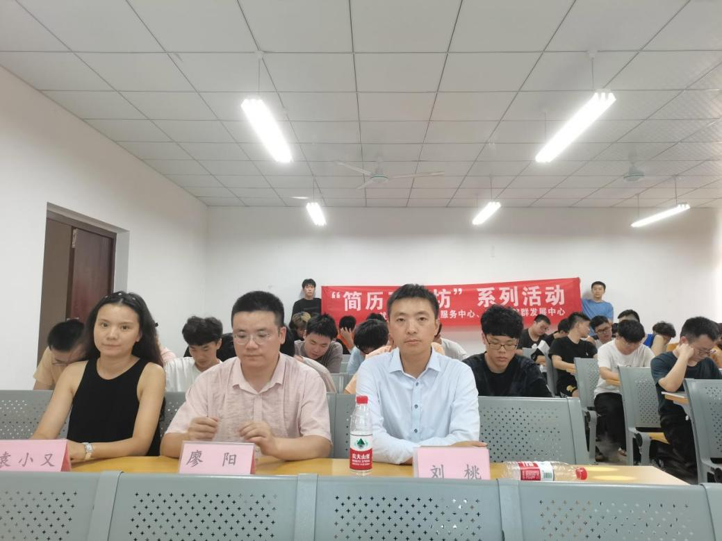 本次活动邀请到数字经济与信息管理学院廖阳老师担任主讲老师,智能工程学院刘桃老师和就业创业指导与服务中心袁小又老师参与简历修改。