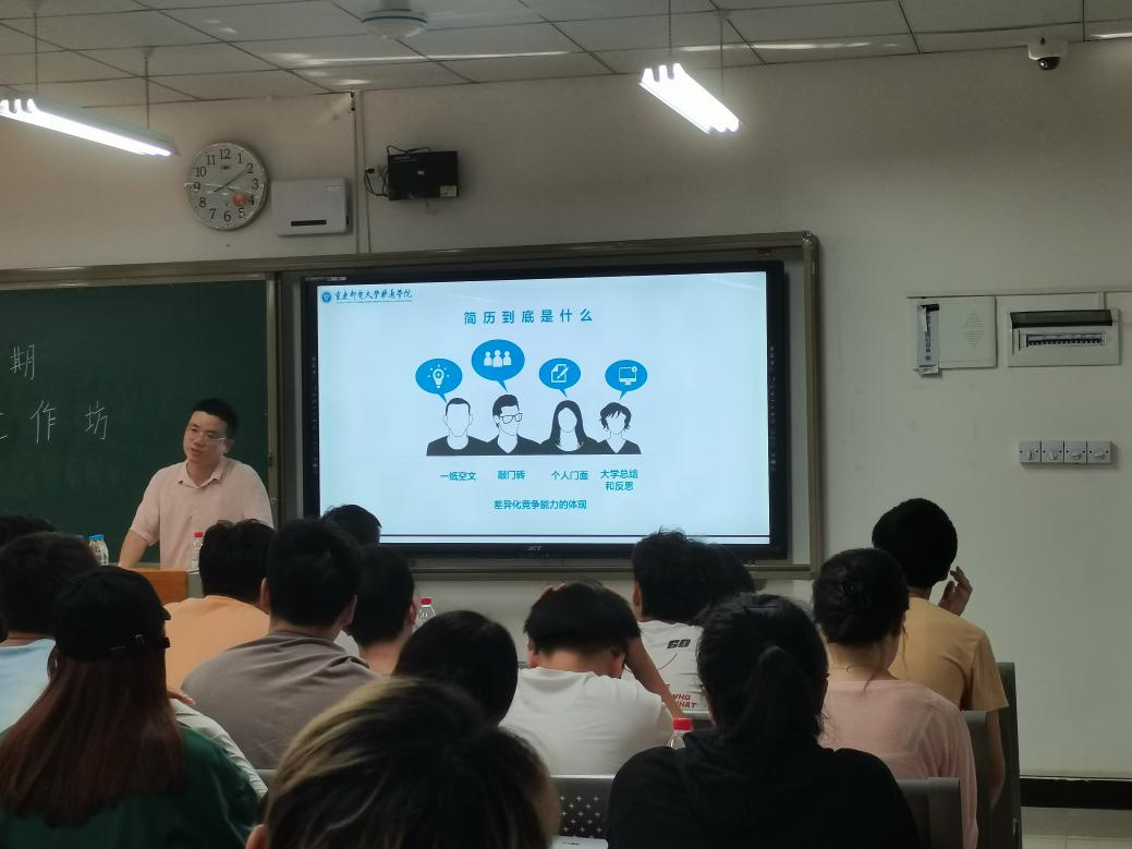 简历敲门砖,未来展风采。为助力我校学子在简历制作方面有更深的了解,切实地解决同学们在制作简历时的难点,2021年9月22日16:00,由就业创业指导与服务中心主办,荷悦书院承办的第十八期简历工作坊活动在竹逸A102开展。