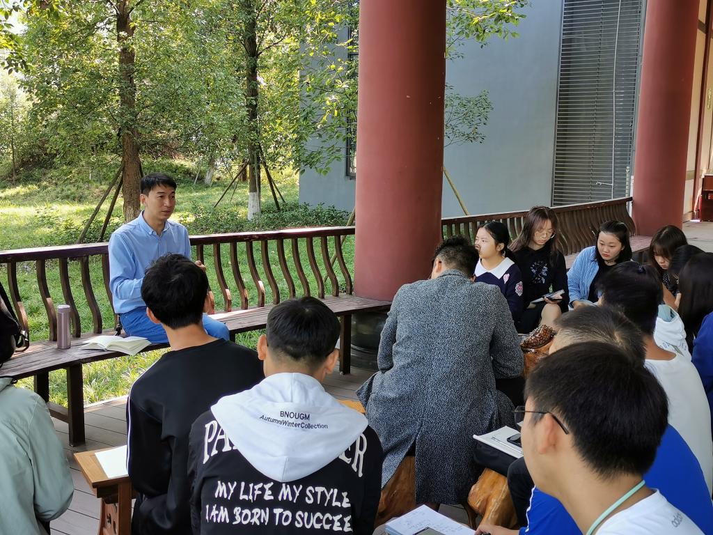 方刚老师还会在天气适宜的情况下选择课外授教,使同学融入自然,亲身感受到文人墨客的雅兴。方刚老师与我们一同坐在木椅上,这时,我们并不是老师和同学的身份,而是一群爱好读书的读者,在互相分享自己的阅读体验。(非虚构工坊 成帅龙)