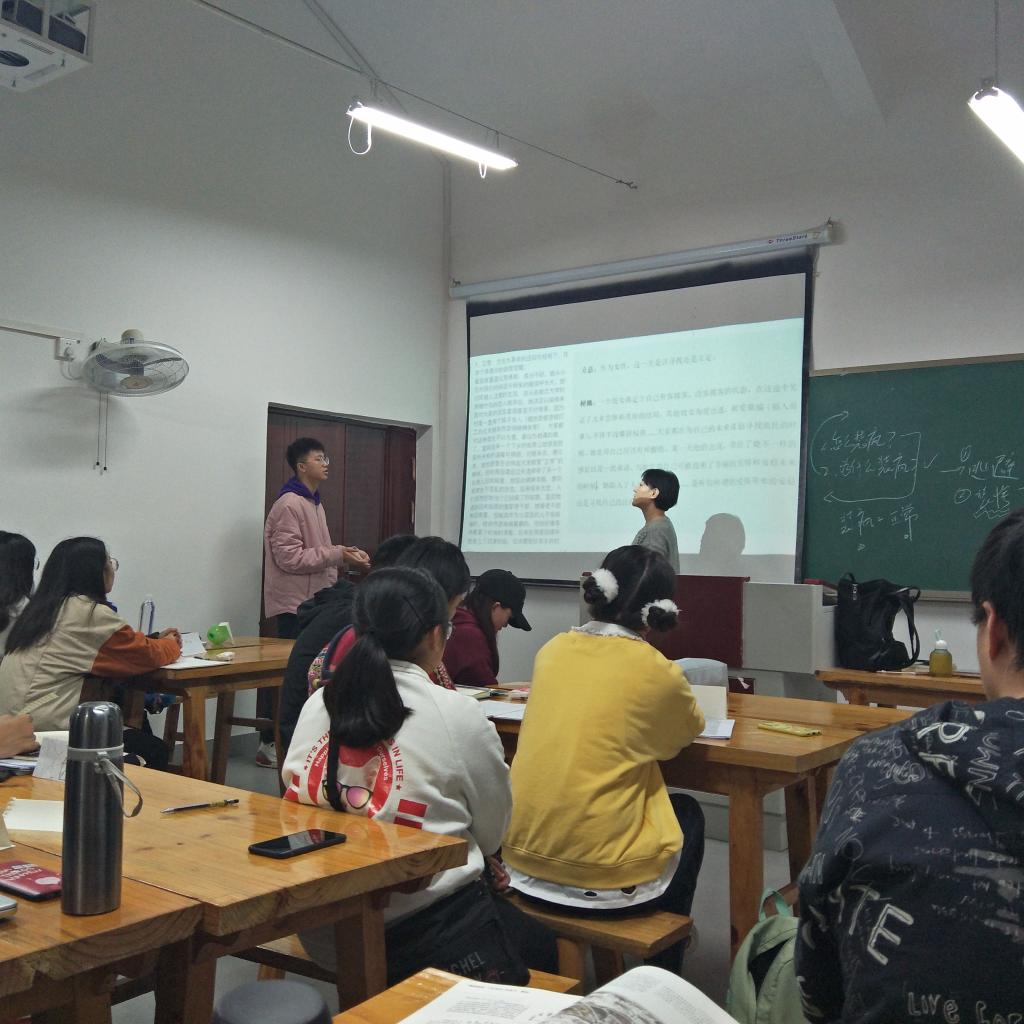其中不乏一些有独特见解的同学,时而陈述各自观点,时而积极展开辩论,好不热闹。同时,吴老师也会为我们类比其他小说的例子,使我们的理解更加透彻。
