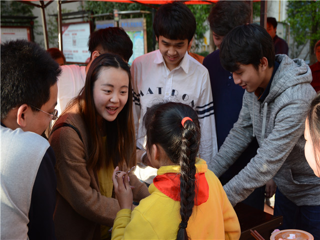 用互动打破生疏的隔阂 孩子的童年总是最天真浪漫的。背背球,木头人都是童年中最耳熟能详的游戏。主持人与围观的孩子们开心地做游戏,123不许动这简简单单的几句话却引起了孩子们最大的兴趣,主持人一次又一次的喊出“木头人”孩子们一次又一次定格在了天真的瞬间。小伙伴抱在一起,为挤破那小小的气球用尽全力……或许这就是简单的魅力吧。互不相识的孩子在短时间打成一片。以后他们就是最亲密的伙伴,也说不定了。