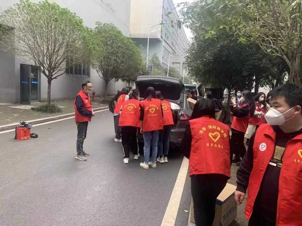 淬炼商学院57名志愿者迅速分为3组,第一时间到达北山1、2、3号楼。学院的送餐运力不足,8辆志愿者私家车迅速编组成立送餐车队投入送餐;