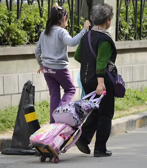 7点,李晓燕老师吻别可爱的小女儿,在白发苍苍母亲的帮助下,背着大箱小包进了校园。