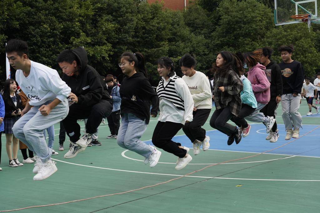 而在齐心协力,也就是跳长绳游戏中,同学们则团结一致,高度专注,不管是男生女生,都不想因自己的失误而葬送掉团队的胜利,各个团队在一条条长绳中整齐划一,穿梭自如的跳着,一度是现场气氛焦灼万分。