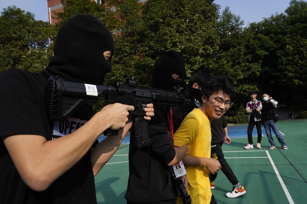 紧接着,在介绍了趣味运动比拼的各项活动积分规则之后,令人期待已久的游戏环节正式开始,在123木头人中,同学们展现出了高度的积极性,争先恐后的参与到游戏内容中,游戏规则参考了近期大热的电视剧《鱿鱼游戏》,得益于现场的游戏工作人员和吉祥物玩偶的有趣表演,使得游戏过程更加生动。