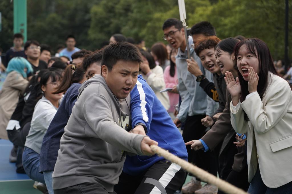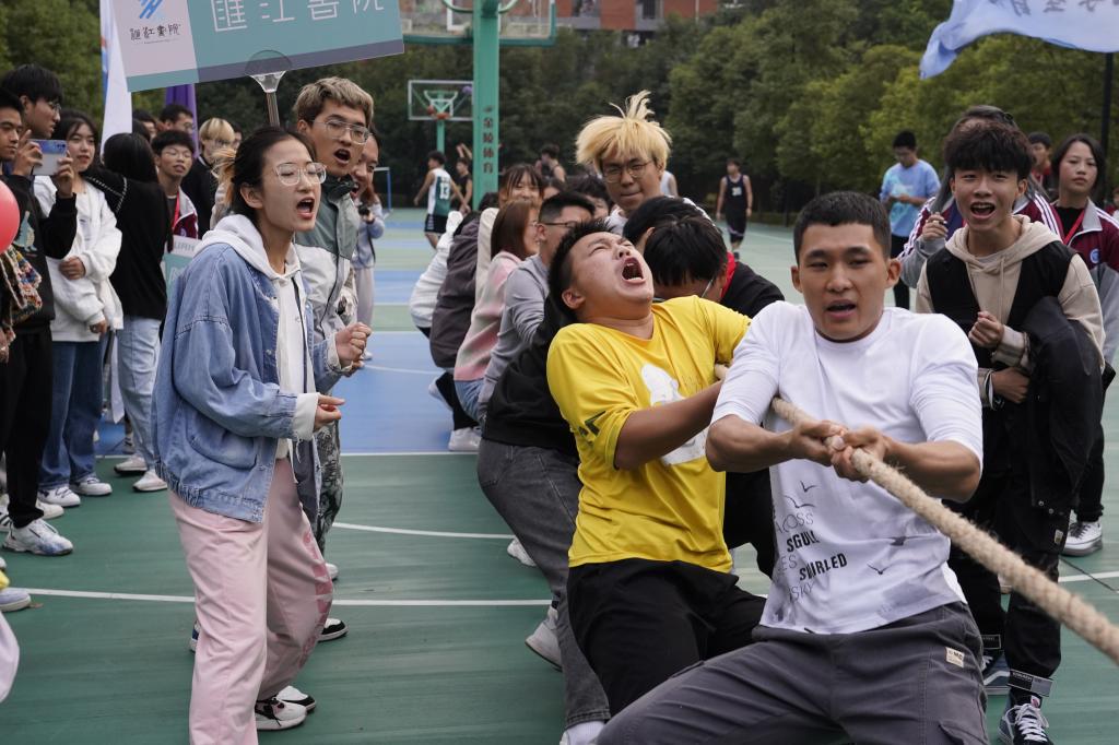 最后一个游戏是比拼中的重头戏——拔河,这是最原始最纯粹的团队力量的比拼,九支队伍在长达三轮以及三局两胜的赛制比拼中决出最具有力量的队伍,这场游戏也是整场闭幕式中的高潮,同学们的欢呼声再一次提到了最高。