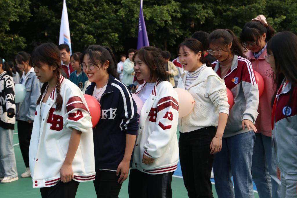 经过了小小的修整后,同学们鼓足力气开始参加接下来的贪吃蛇接力赛游戏,这个游戏的规则是以小队为单位,通过前胸贴后背的方式夹球移动至终点,因此不仅考验技巧,更考验团队配合以及节奏把控,在本场游戏中,现场的竞技氛围再一次被点燃,每个人都在为自己书院的队伍加油。