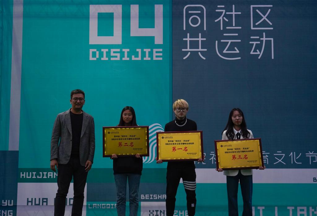 游戏结束后的表彰仪式中,对本届社区体育文化节中闭幕式书院趣味活动中排名前三的书院学生自治委员会进行表彰。