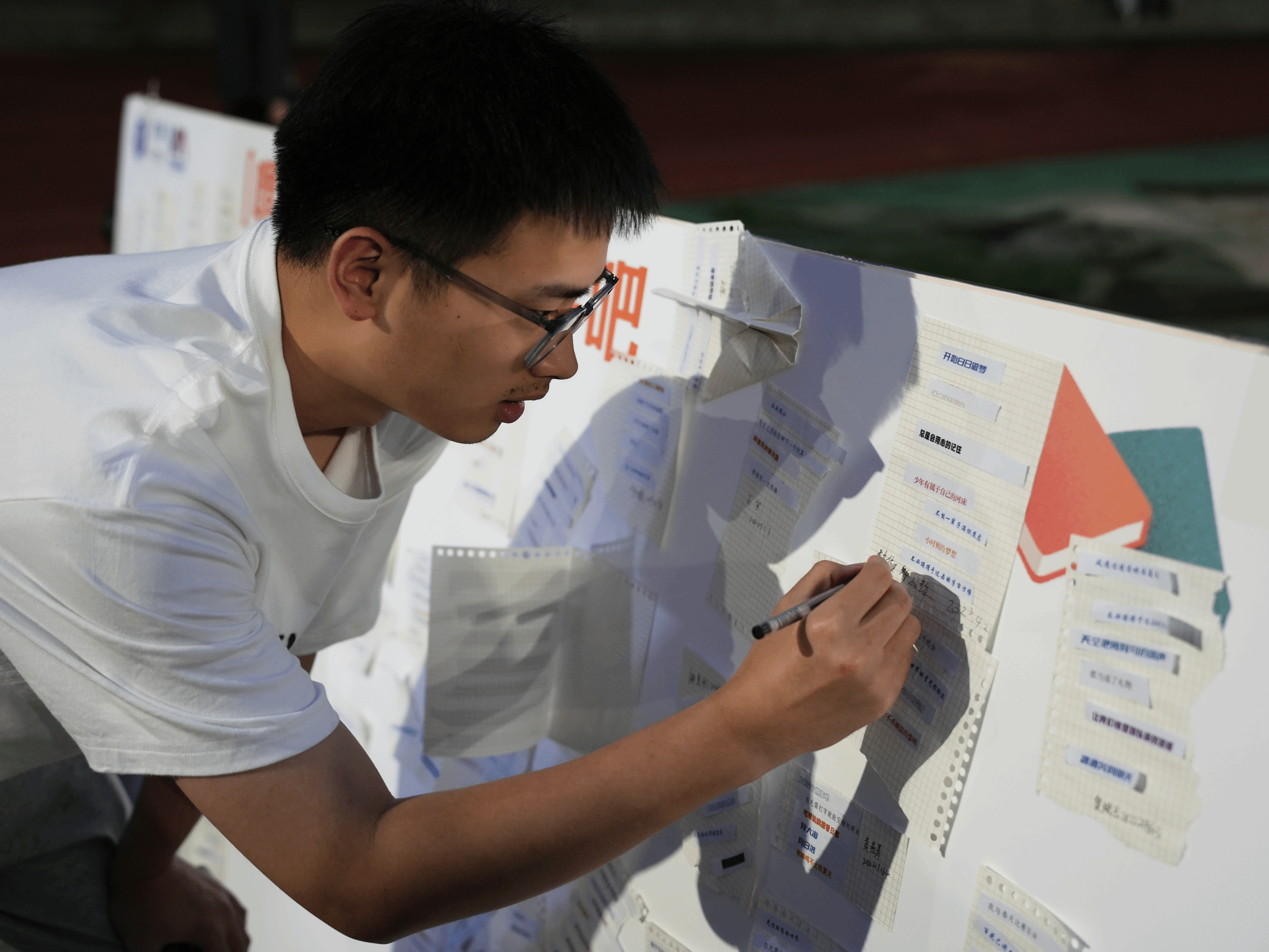 你是否曾有过一个诗人梦?将固定的语句、字词打乱顺序,发挥你天马行空的奇思妙想,将之重新拼凑成为一首诗,最后的结果可能超乎你的想象!文字的魅力在于阅读、在于写作、在于重塑,南湖书院于4月21日晚在B区足球场上开展了“嘿朋友,一起来写诗吧!”主题活动,以拼接诗的形式鼓励同学们勇敢表达情绪、传递态度、展示文采。