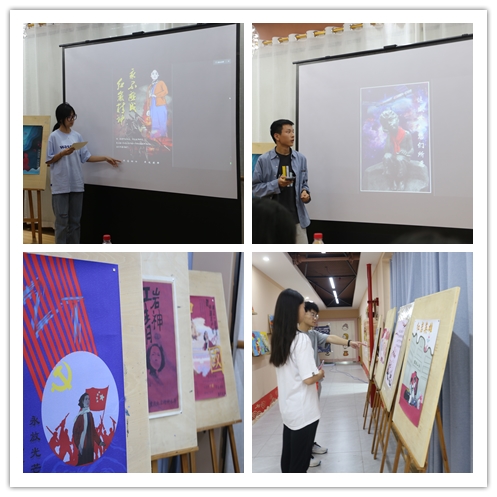 在决赛中,为了更好更充分地展现作品,工作人员将作品以画展的形式整齐地排列在北山书院一楼,色彩丰富,主题鲜明的作品吸引了众多师生驻足品鉴。本次大赛以作者现场讲解的方式进行,评委们从主题符合度、创新程度、整体效果、技术制作难度、现场讲解效果五个方面进行全面公正的评分,最终评选出一等奖1名,二等奖4名,三等奖5名,优秀奖若干名。