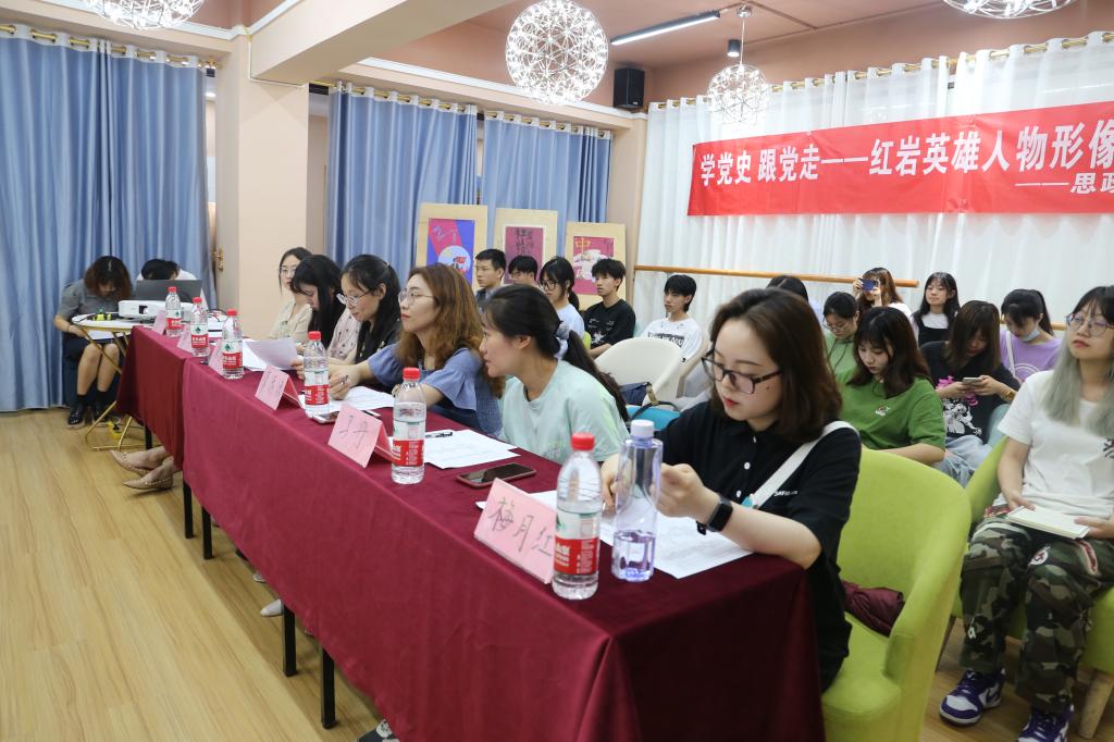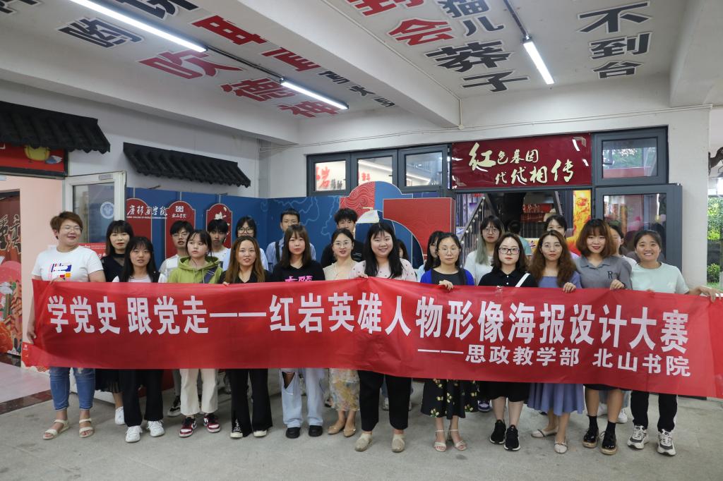 在迎接中国共产党成立一百周年之际,为深入学习贯彻习近平总书记关于党史学习教育的重要讲话精神,继承发扬革命传统,用好红色资源、紧扣伟大实践,上好“大思政课”,扎实推动广大学子学史明理、学史增信、学史崇德、学史力行,促进大学生把握新时代肩负的历史使命,从革命历史中深刻汲取营养,勇于担当、善于作为;同时为扎实贯彻学校办学理念,落实书院导师制,思政教学部德育教研室和北山书院以“红岩文化素质培养”项目为基点,面向全校学生开展红岩英雄人物形象海报设计大赛。本次大赛经过评委们严格的层层筛选,从140份参评作品中选出20份作品,于6月9日下午4点在北山书院一楼排练厅举行决赛。