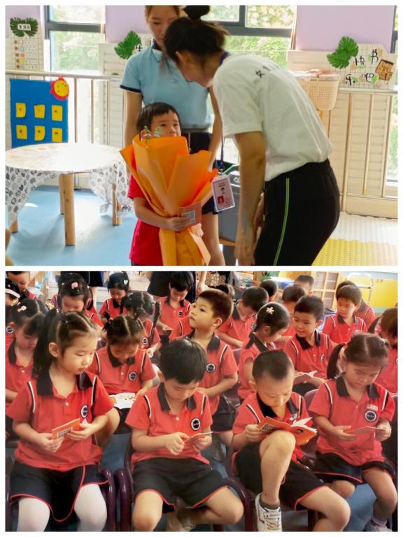 课程最后,志愿者们为小朋友们发放了安全教育手册,便于回家和家长一起分享学习,而小朋友们还为老师和志愿者们送上了鲜花。小小的一束鲜花,整齐的一句“谢谢你们”,让老师和志愿者们觉得温暖而有力量,希望每一位小朋友都能像鲜花一样绽放最美的光彩!
