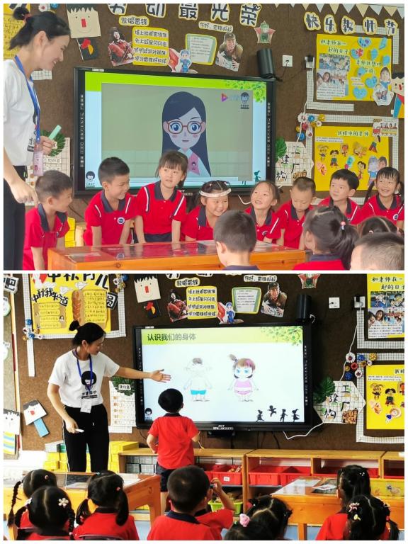本次课的授课对象为中班小朋友,考虑到小朋友的认知水平、理解能力等,在授课之前,杨老师对教案做了细微的调整。不仅加入了视频动画,互动演绎,而且调整了教学内容,用生动形象的视听内容,让小朋友们在轻松愉悦的氛围中感受每一个教学环节。
