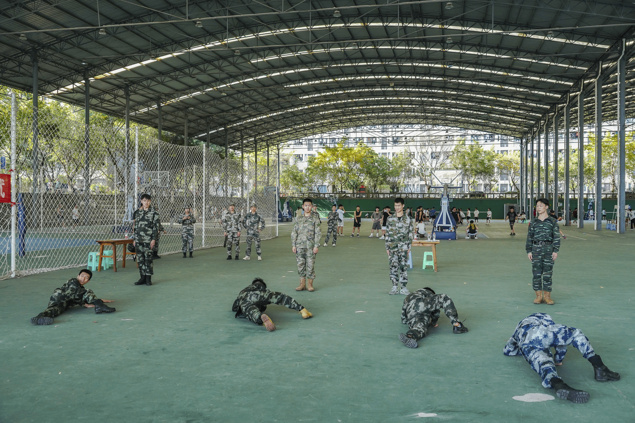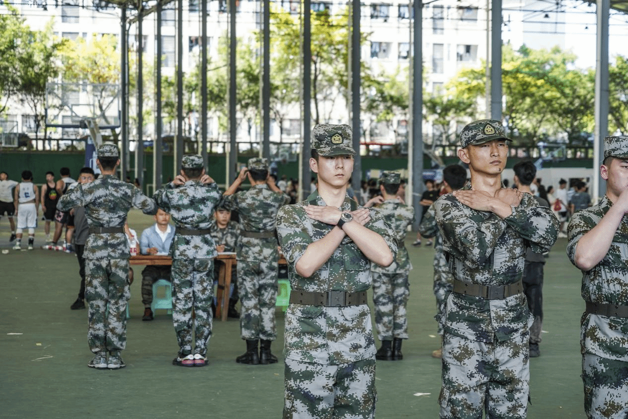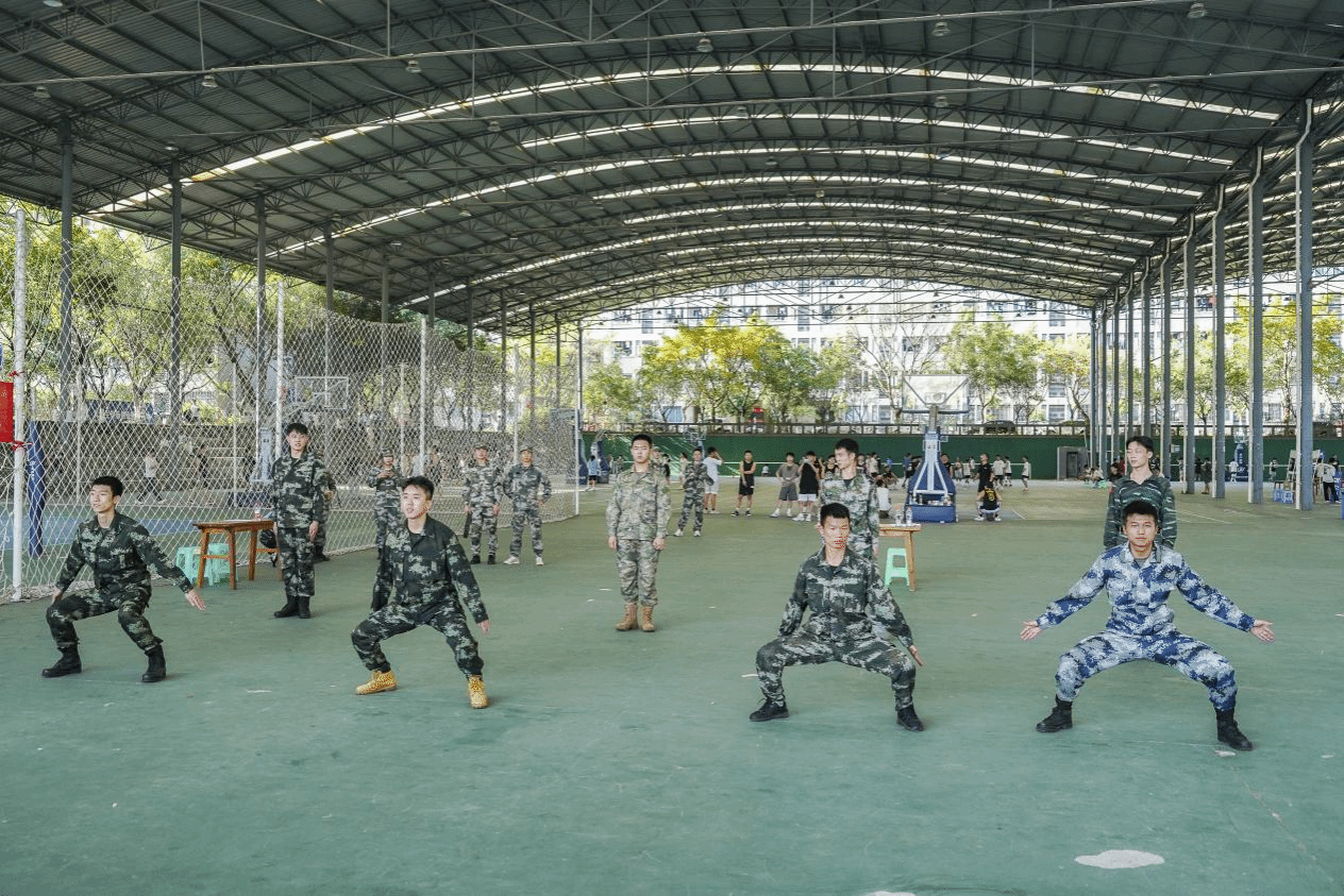 随后,全体老师及考生一同来到北校区风雨篮球场进行面试选拔,面试选拔将综合考察考生们在军队中日常行为规范及指挥下令、项目讲解等。面试开始前,考官余青河老师有序整理队形之后,全体考生共同唱响《强军战歌》,此时,歌声嘹亮,字字铿锵,他们身着迷彩服装是校园中最靓丽的风景线。随着余青河老师下达面试开始的口号,各队有序进行关于动作规范的统一面试。之后考生们逐一进行口令指挥、项目讲解展示,伴随“稍息、立正”、“向右看齐、向前看”等不同口号的下达,考生们以退役军人的身份尽显英姿飒爽,将军队里的精气神带入校园,以巾帼青春展少年芳华,以责任意识显军人担当。