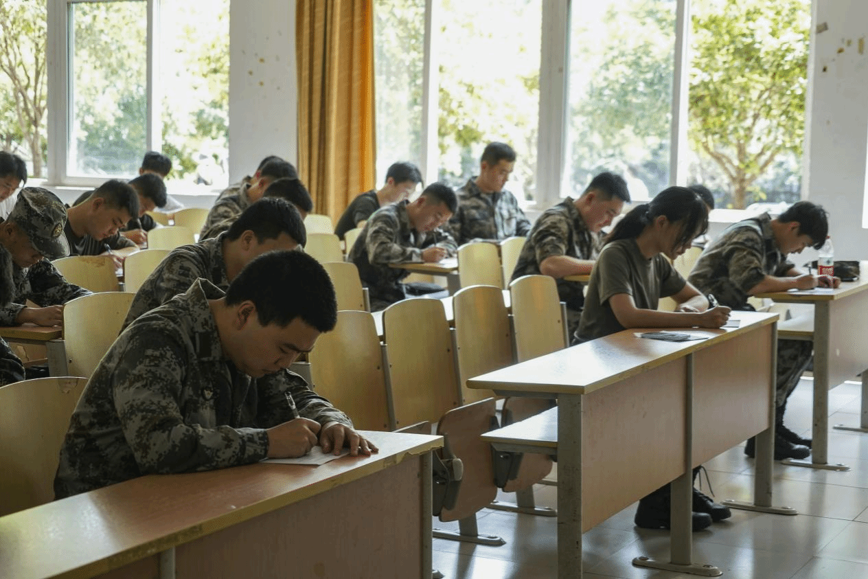 笔试考试伊始,余青河老师和张旭老师对考生们详细解释本次选拔工作的目的及意义,并对本次笔试选拔进行要点提示及考生考场分配。“所带连队有打架情况发生,你该如何处理”、“作为军训教官学生与你发生冲突怎么办”每一个问题都是考生们未来可能需要面对的情境,如何处理亦是对未来的情境假设,亦是对他们的考验。考生们踊跃答题,用自己在军队的经历以文字为依托表达自身见解,将自身所思所感写于答题纸上。