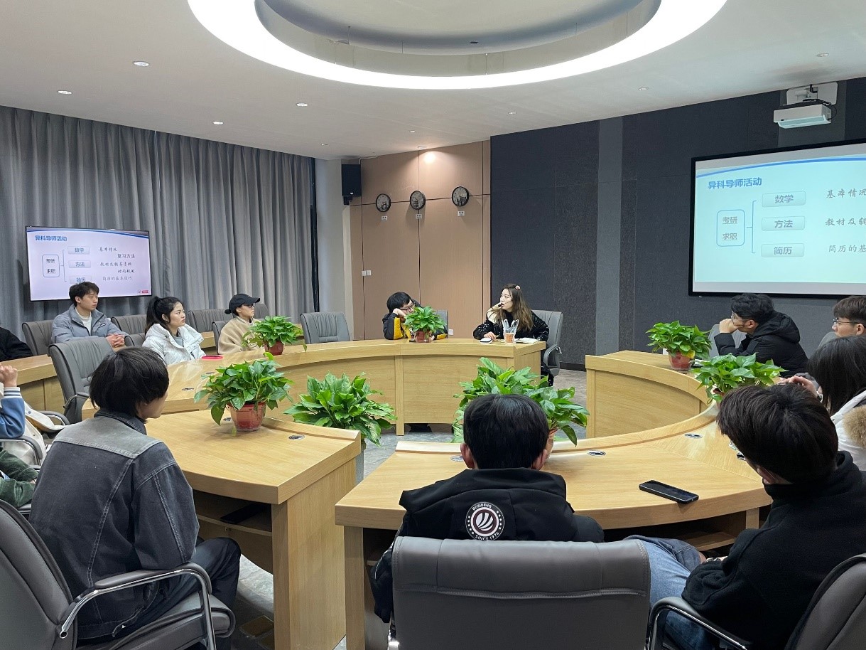 为适应我国社会主义现代化建设的需要,积极响应我校“以学生发展为中心”的教育理念,实现学生成长全员、全程、全方位的培育方案,让学生直接面向社会、面向市场。12月26日上午于南湖书院圆桌会议室,异科导师陈鸿玙老师与数字经济与信息管理学院2019级大数据管理与应用专升本1班全体同学进行了一次“立足现实志存高远”的学习求职交流分享会。本次的分享会主要就学习方法、简历书写等话题具体展开,旨在让学生们具备相应的学习技巧和基本求职技能。