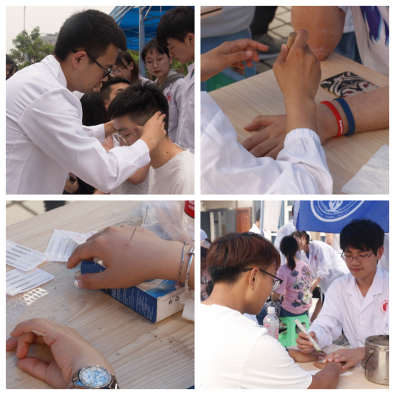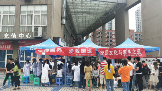 5月11日,由我校传统文化学生社团联盟、重庆医科大学针灸推拿协会共同举办的以“中医文化与养生之道”为主题的第十一届社团文化艺术节子活动于天梯底顺利进行。
