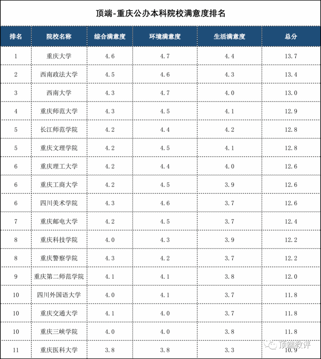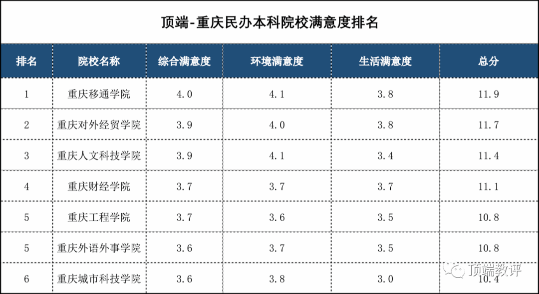 8月21日,我校在顶端教学质量评估(重庆)有限公司(以下简称顶端教评)发布的重庆民办本科院校满意度排行榜中位居第一。