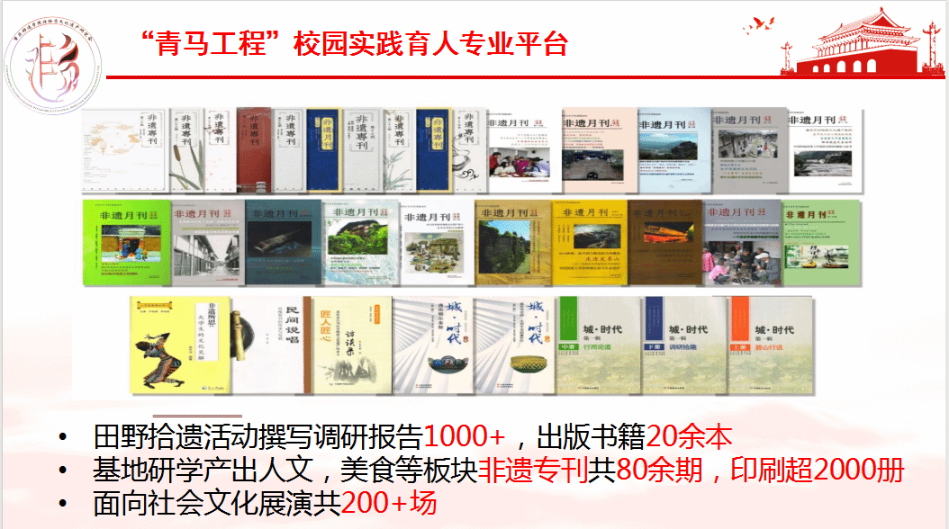 “非遗美育铸魂,聚力文化振兴”社团品牌项目是非物质文化遗产研究会近年来所开展的特色活动项目,以研究会全体成员为主体,全校学生及社会人群为对象,立足区域非遗资源,从非遗传习、田野实践、文化展演等多维度实践的文化育人项目。项目通过“请进来”与“走出去”的双路径,为大学生构建“学校”与“社会”的双场域,形成特定的活动体系,促进大学生与文化各主体开展对话,在确定的文化空间中,通过各种活动实现知识内化与外延,从而培养学生的审美观、发展学生鉴赏美、创造美的能力,进而培养学生的高尚情操和文明素质。