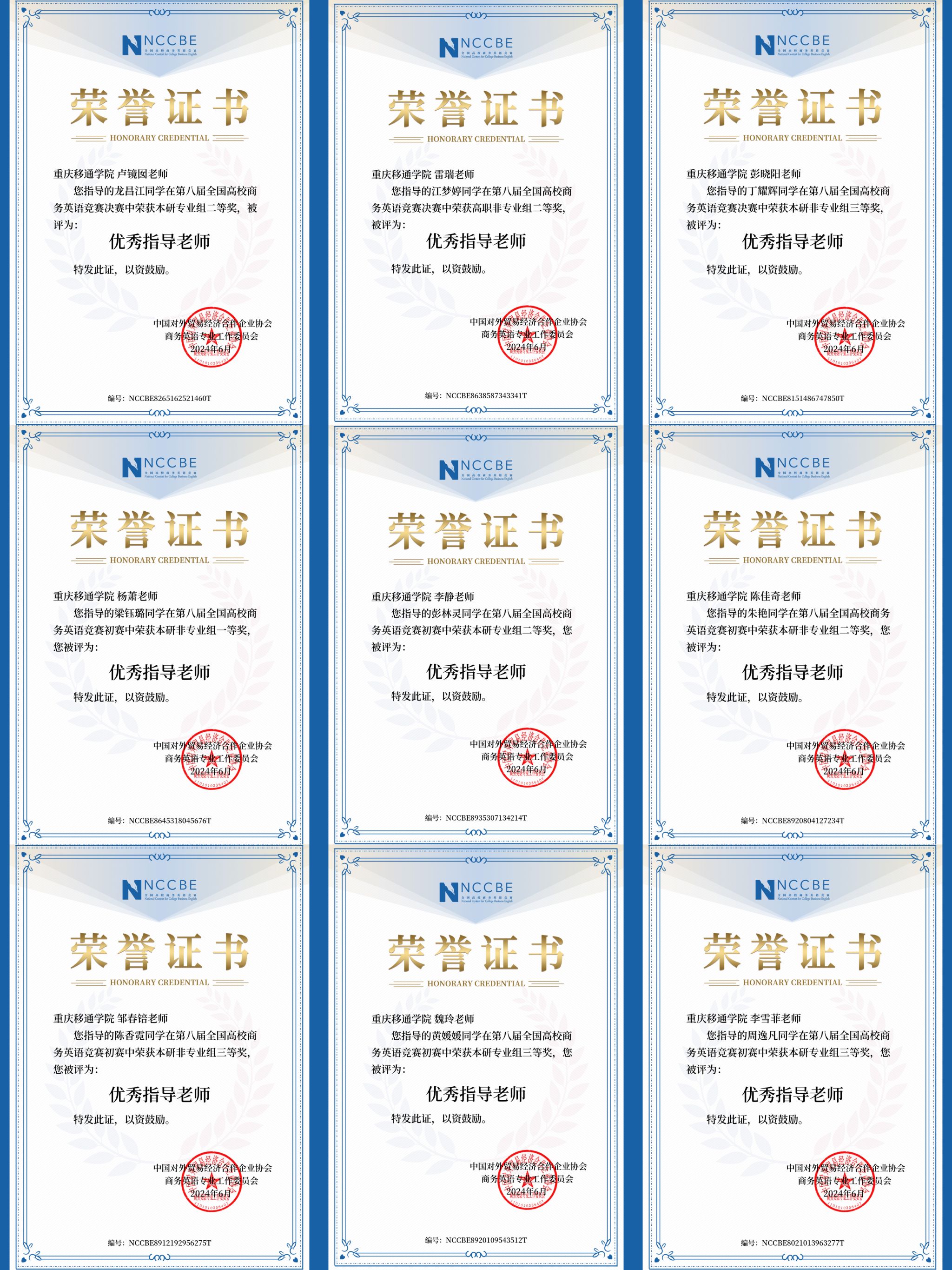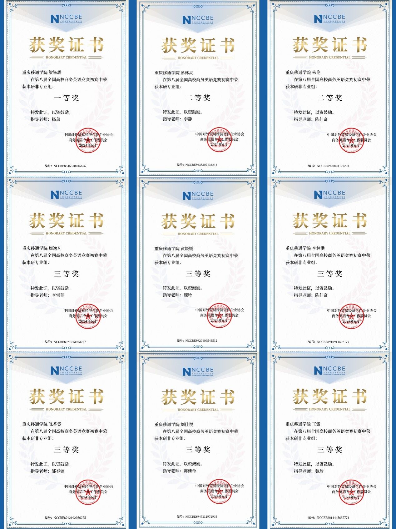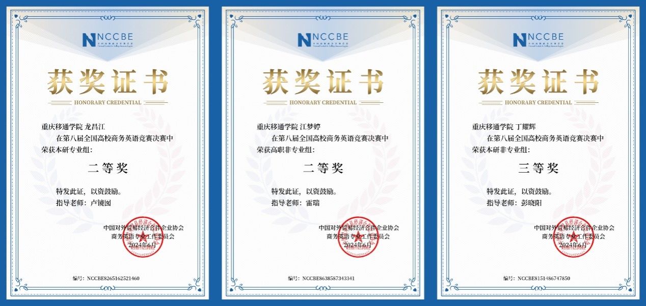此次竞赛为重庆移通学院培养学生商务英语素养、交流教学成果和展示学生风采搭建了一个国家级平台,我校选手在激烈的竞争中脱颖而出获得优异成绩,充分体现了我校“四位一体”培养模式下学生拥有扎实的商科知识,综合的英语应用能力及良好的职业素养。国际商学院将继续积极探索“以赛促教、以赛促学、以赛促建”的途径与方法,秉持聚焦沟通的理念,着眼于国际商科的发展,努力提升大学生商科素养和实践应用能力,助力培养具有跨学科应用和跨文化交际能力的国际化人才。
