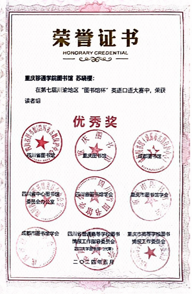 近日第七届川渝地区“图书馆杯”英语口语大赛总决赛及颁奖典礼在重庆图书馆举行。