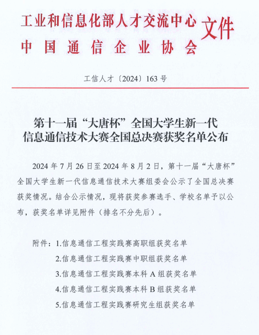 荣获大唐杯全国总决赛信息通信工程实践赛本科B组全国一等奖