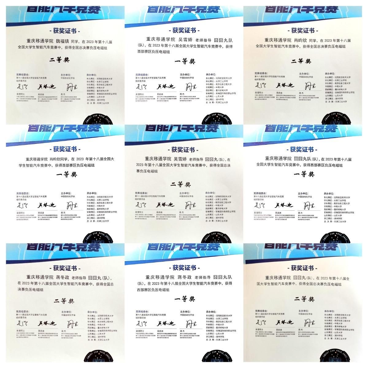 本届大赛共吸引来自全国的3138支队伍、万余名大学生参加,最终有504支队伍进入全国总决赛。我院组织的两支参赛队伍分别参加负压电磁组和四轮摄像头组。在西部赛区比赛中,与90余所高校、300余支参赛队伍、1000余名选手同台竞技,最终脱颖而出斩获西部赛区一等奖1项,二等奖1项。由肖昀钦,魏福镇两位同学组成的参赛队挺进全国总决赛,于8月17日-19日在天津工业大学与504支队伍的1500余名选手激烈角逐,以优异成绩获得负压电磁组全国二等奖。在备赛过程中,参赛选手分别经历了电路板设计制作焊接、整体硬件测试、机械结构优化、传感器布置、算法调试优化、多车联调等多个测试和制作阶段,充分锻炼了学生综合运用多学科知识解决复杂工程问题的能力。