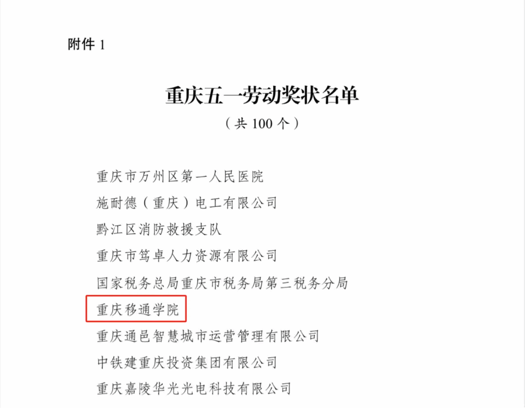 4月30日,由重庆市总工会、重庆市人力资源和社会保障局开展的2024年重庆五一劳动奖和重庆市工人先锋号结果出炉,我校继2022年荣获“重庆市工人先锋号”称号后,今年荣获五一劳动奖状!