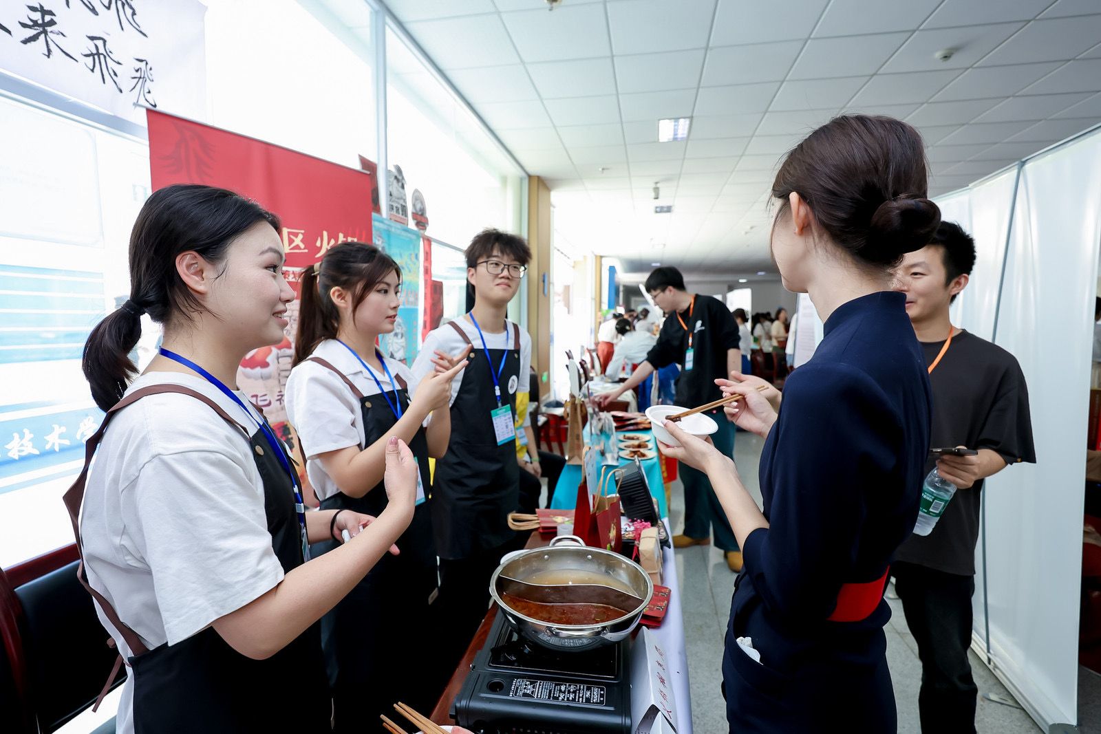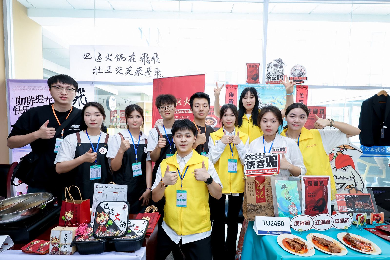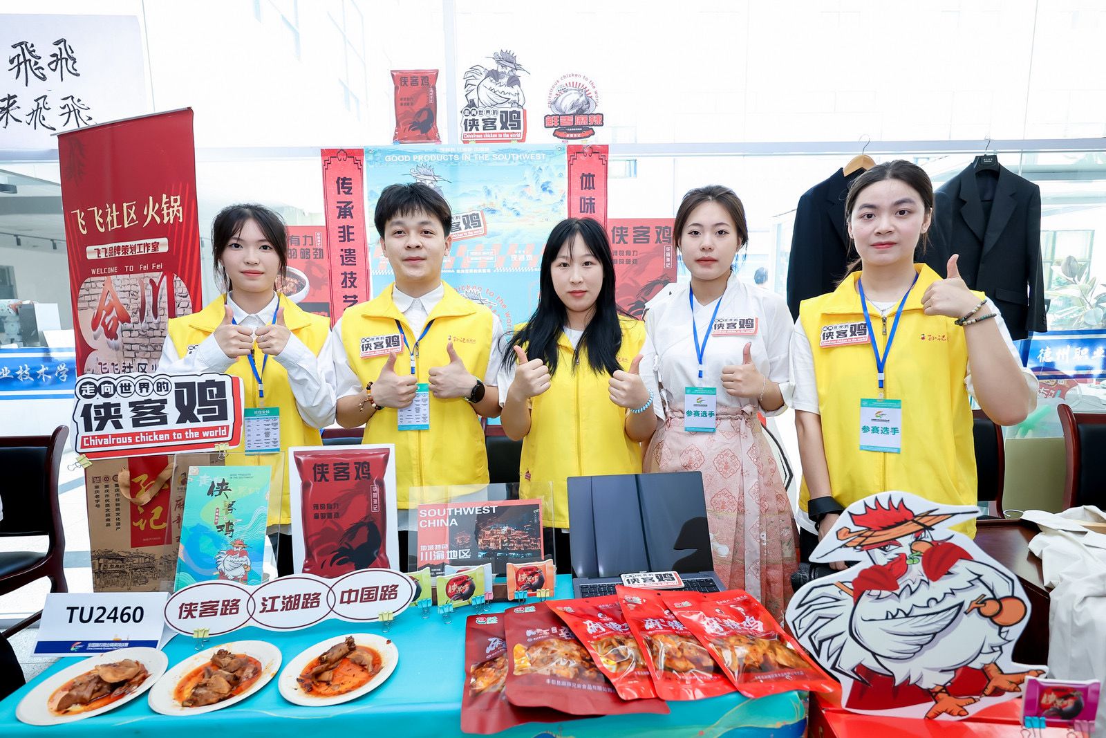 “SKY品牌策划工作室”、“飞飞社区火锅品牌策划工作室”作为我校首次进入精英赛的代表,在22日上午的“项目展洽会”现场备受瞩目,两支队伍分别立足重庆火锅和重庆小众美食麻辣鸡的特色文化与品牌定位,以品牌策划方案的撰写难度、专业度与极具氛围感的展位场景布置赢得了评委和现场师生的高度认可;在项目路演和答辩环节,两支队伍则从品牌定位、品牌元素设计、品牌推广与传播等维度出发,向大赛评委团进行了全面而细致地展示,凭借较高的逻辑思维能力、语言表达能力和现场感染力展现出了移通学子的风采和移通育人成效。