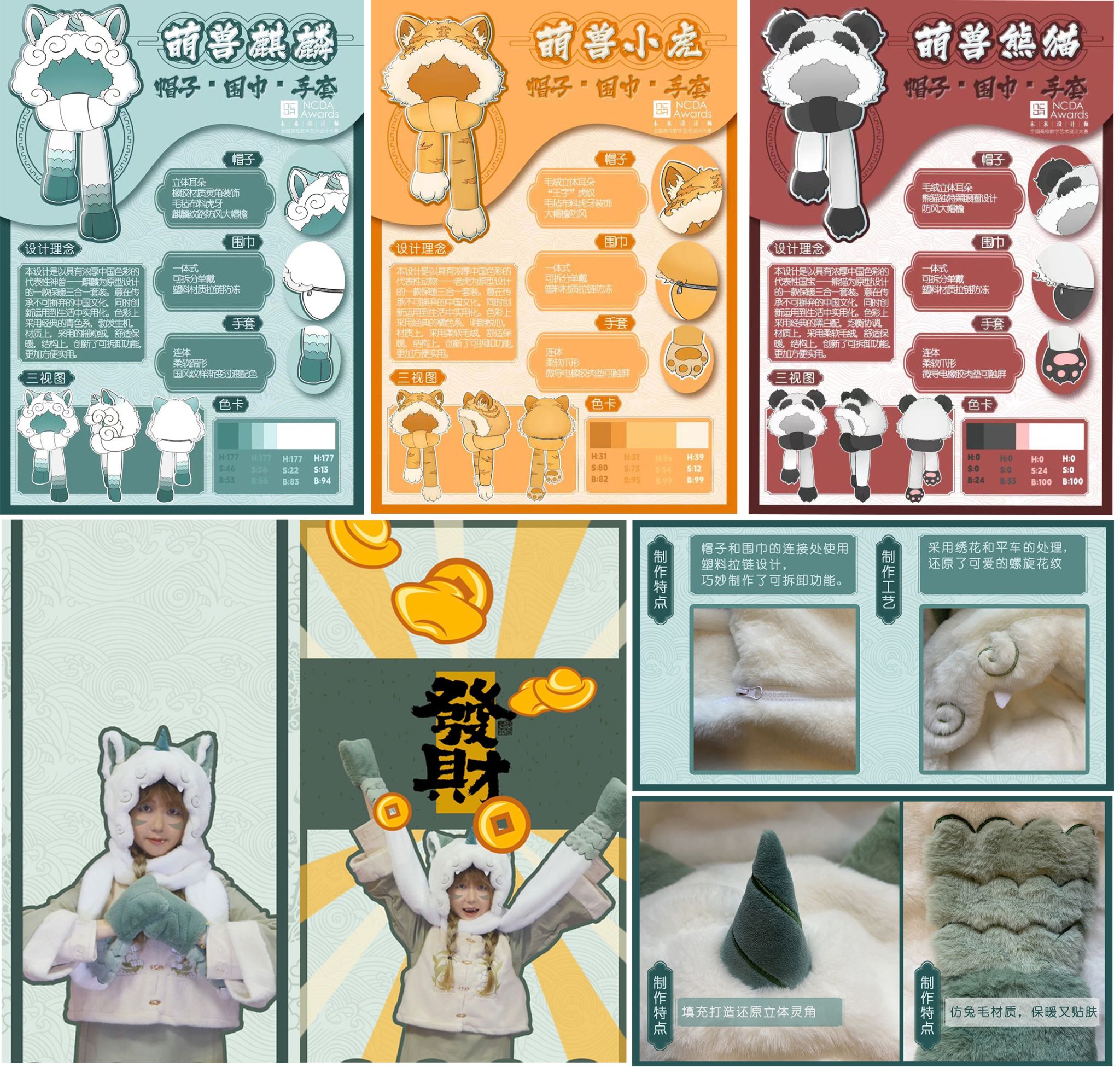 本次大赛涵盖了 1,826 所高校,共征集了 289,865 件作品,从全国 6191 件作品中“ 杀出 ” 的 30 件作品进入市场化竞赛,见证了各高校强烈的竞争力。其中刘琪教师带领的 “萌兽三宝”团队制作的冬季保暖套装,是以具有浓厚中国色彩的代表性神兽——麒麟为原型设计的一款保暖三合一套装。在传承不可摒弃的中华文化,同时创新运用到生活中实用化。艺术传媒学院一直强调实践与理论相结合,艺术传媒学院动画教研室注重学生实践能力的培养。此次大赛真正实现了产品设计、打样、销售,团队与设计制作厂家、销售公司不断优化方案,真正实现了产品落地,进入市场。“萌兽三宝”冬季保暖套装中的麒麟系列,在市场上一经销售,销售量为8000件,金额高达224000元。