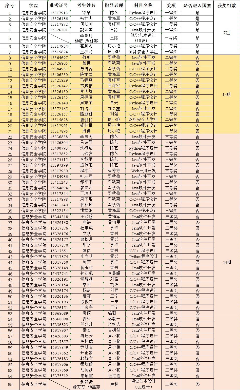 信息安全学院一直以来都高度重视学科竞赛,鼓励全学院专业教师积极参与学科竞赛工作,积极组织、筹办各类高层次、高水平的学科竞赛,成功举办了“古剑山”第一届全国大学生网络攻防大赛、重庆移通学院数据库应用程序设计大赛、重庆市大学生程序设计大赛重庆移通学院选拔赛等诸多赛事。