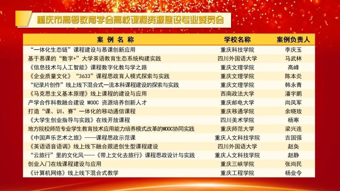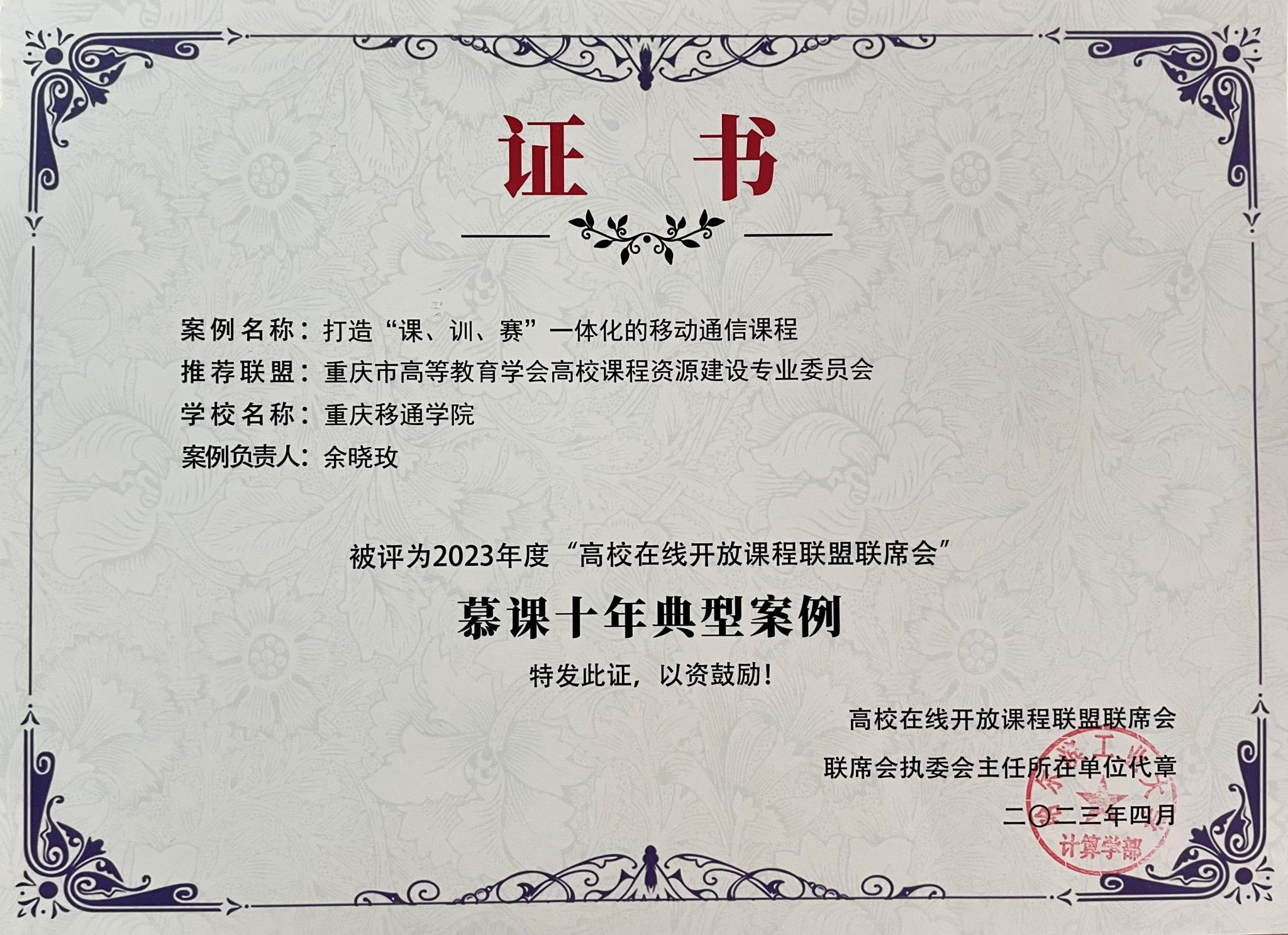 我校余晓玫老师负责的《打造“课、训、赛”一体化的移动通信课程》一流课程示范案例经重庆高等教育学会高校课程资源建设专业委员会遴选推荐,入选2023年度高校在线开放课程联盟联席会“慕课十年典型案例”并编入“慕课十年典型案例集”。本次重庆高等教育学会高校课程资源建设专业委员会共择优推荐15门案例入选,全国共遴选出333个“慕课十年典型案例”。对于入选的案例,将在多个层面进行展示、宣传、推介,为教育行政部门、教指委、高校、企业等单位开展工作提供帮助和服务。