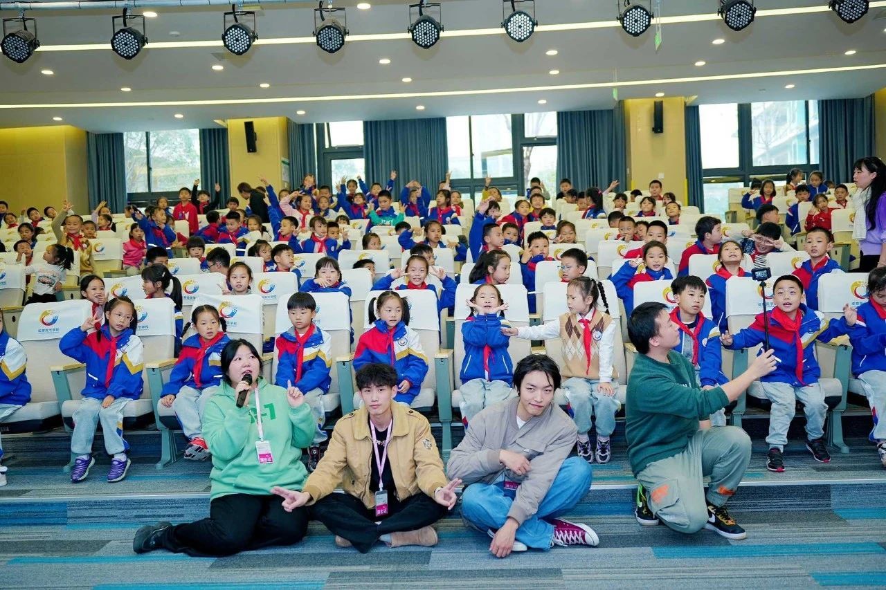 另一边,剧组的成员来到成都英华小学,开展本次校园戏剧节的“一剧进一校”活动,和现场的小朋友进行了非常友好的互动。