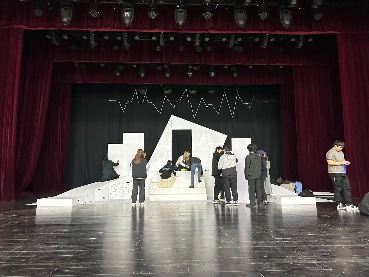 11月13日,早上9点—11月14日凌晨1点,大海剧组完成了灯光的制作和彩排。虽然已经是凌晨了,也细节的总结了舞台上的问题,以及各部门之间配合的问题,为11月14日的展演做足准备。
