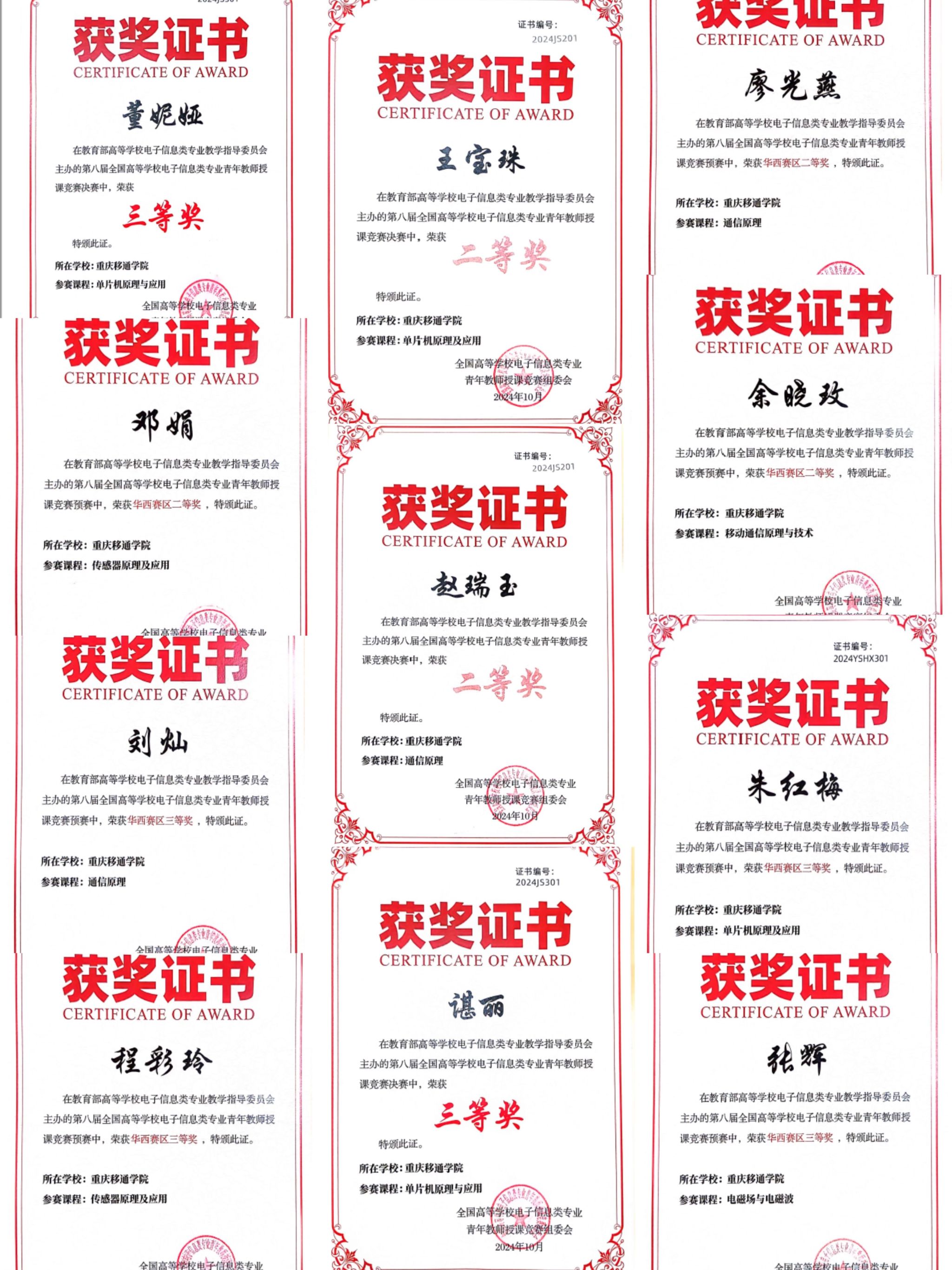 10月20日,第八届全国高等学校电子信息类专业青年教师授课竞赛圆满落幕。通信与信息工程学院的教师们在本次大赛中表现卓越,共获得全国赛二等奖2项、全国赛三等奖2项、华西赛区二等奖3项、华西赛区三等奖4项的优异成绩,充分彰显了我院教师在电子信息类专业授课领域的高水平和实力。