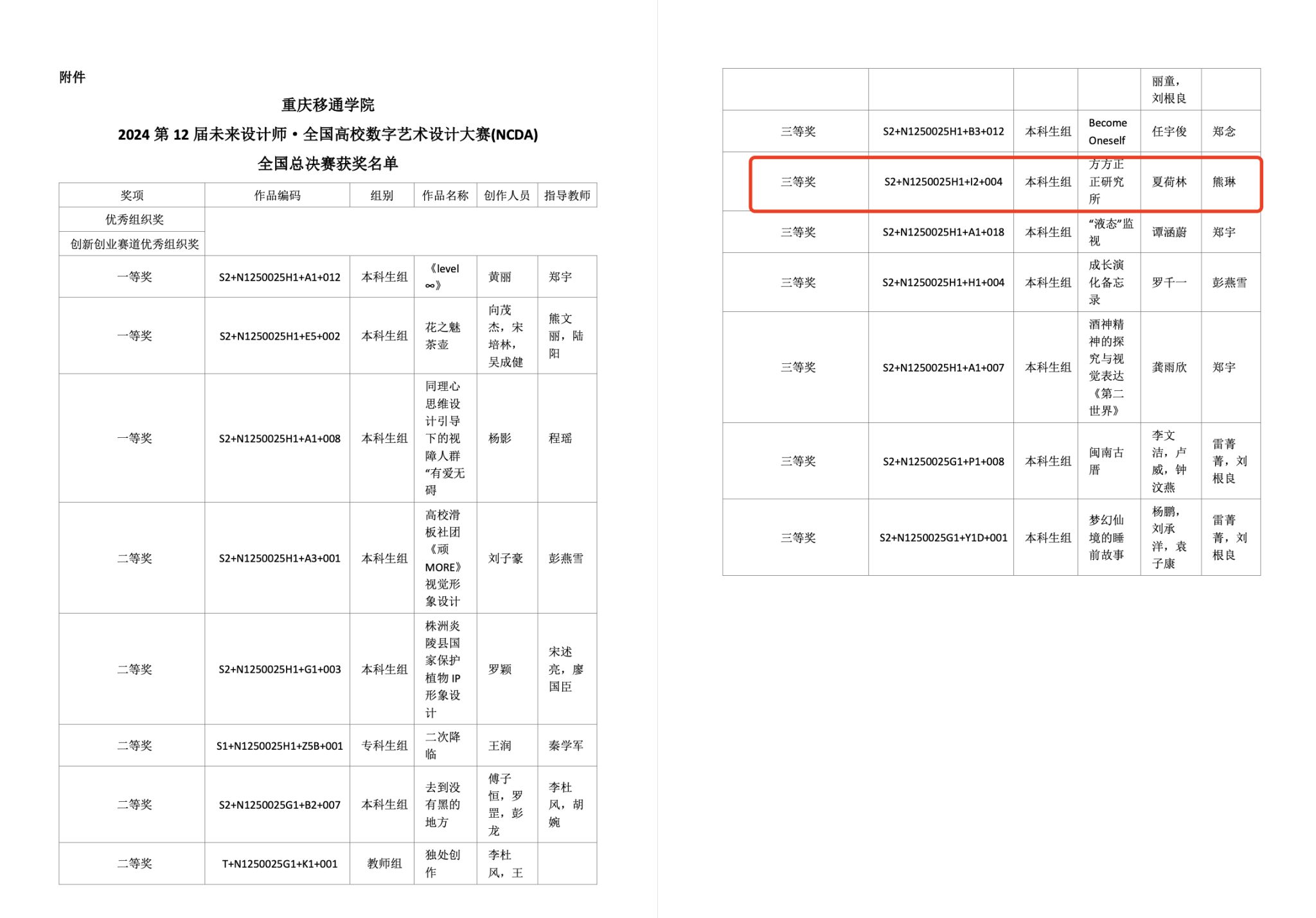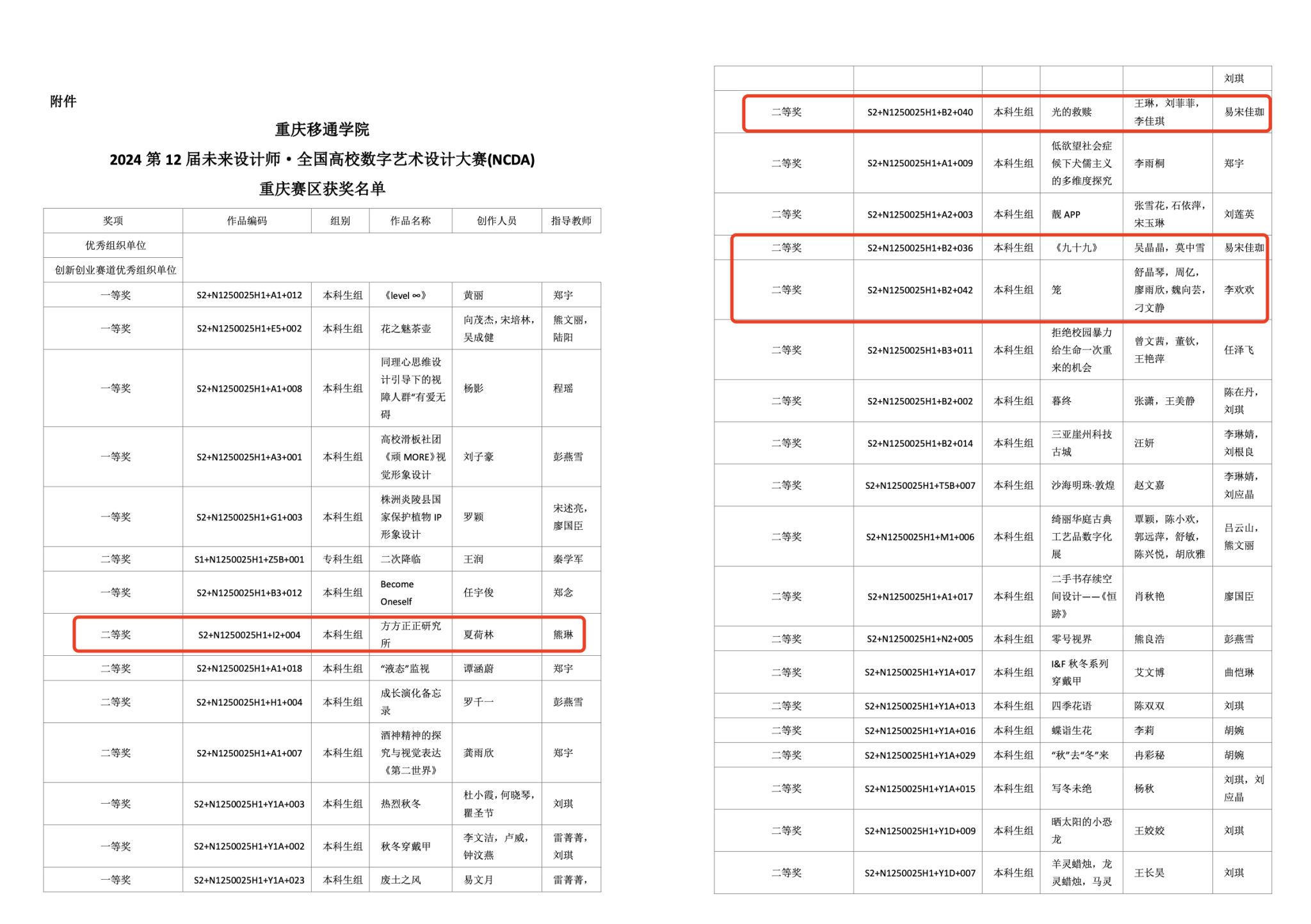 近日,由戏剧影视学院精心承办的2024年第十二届未来设计师·全国高校数字艺术设计大赛(NCDA)圆满结束。在来自各校区、各学院的指导教师的悉心指导下,移通学生凭借扎实的专业技能、新颖的创意和坚持不懈的努力,取得了显著成绩,共斩获全国奖项15项、省级奖项60项。
