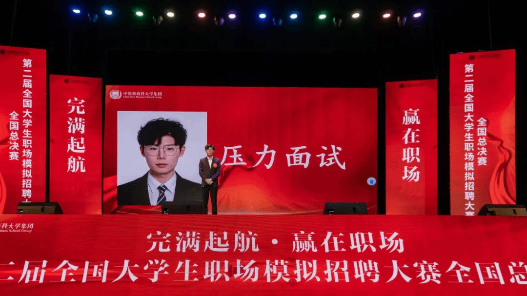 本次决赛分为“自我介绍”和“职场技能测试+压力面试”两个环节,来自全国各地的30位参赛选手通过自己精心制作的VCR进行自我介绍,选手根据求职意向,现场随机抽取与求职意向相关的职业技能测试题进行作答,评委老师对参赛选手进行压力面试,参赛选手们纷纷展现出了他们超凡的才华与冷静的心态,他们身穿整洁的职业装,面带自信的微笑,从容不迫地面对评委们提出的各种问题和挑战,参赛选手们逻辑清晰,条理分明,让在场的观众和评委都为之赞叹。更有选手收到了世界500强企业金光集团现场发来的OFFER!