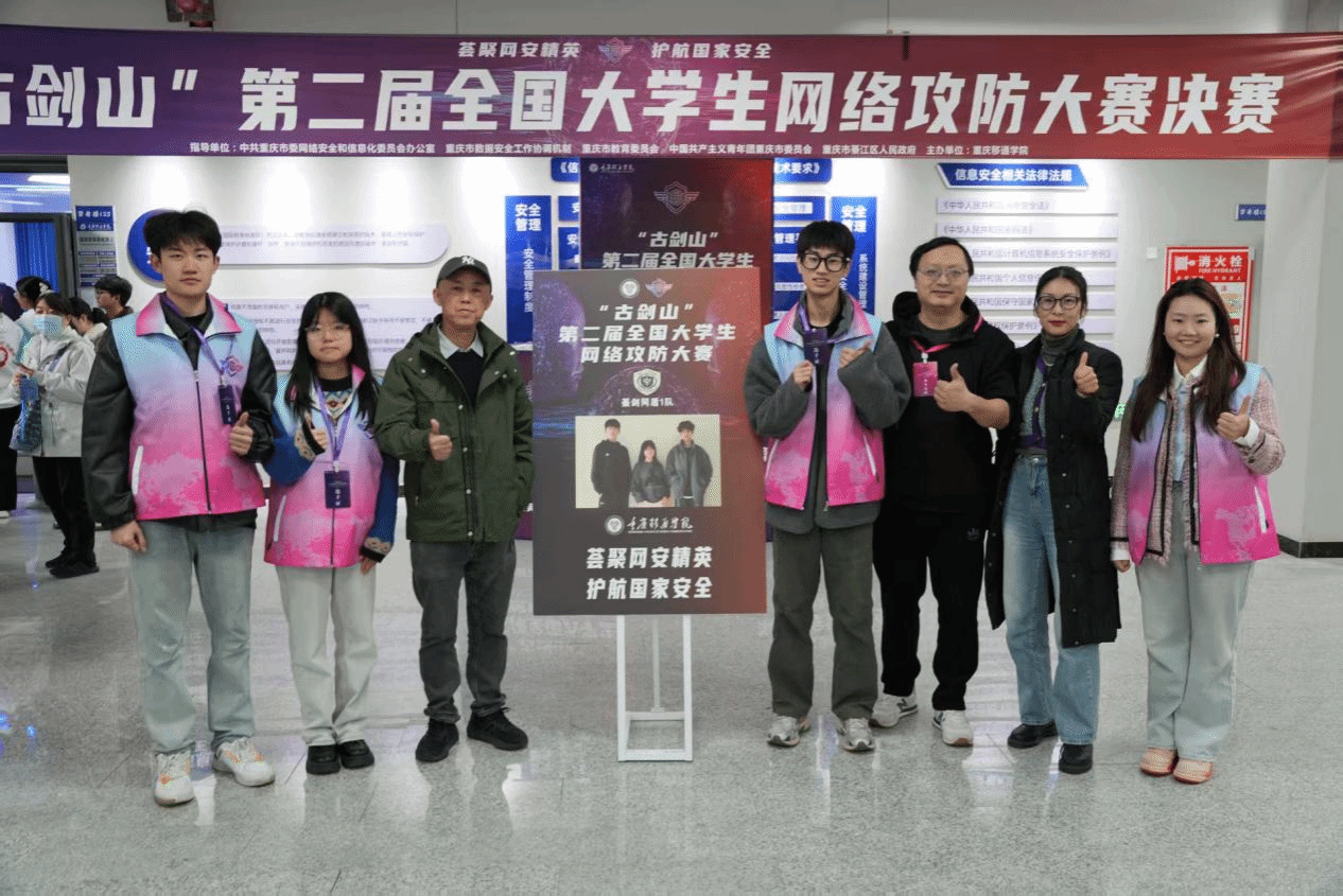 2025年3月29日上午,由中共重庆市委网络安全和信息化委员会办公室、重庆市教育委员会、重庆市綦江区人民政府指导,重庆移通学院主办,奇安信科技集团有限公司提供技术支持的“古剑山”第二届全国大学生网络攻防大赛决赛在重庆移通学院綦江校区成功举办。来自重庆移通学院綦江校区网络与信息管理中心攻防战队的綦剑网盾1队,一路披荆斩棘,在191所高校的1164支队伍中脱颖而出,蝉联全国三等奖。