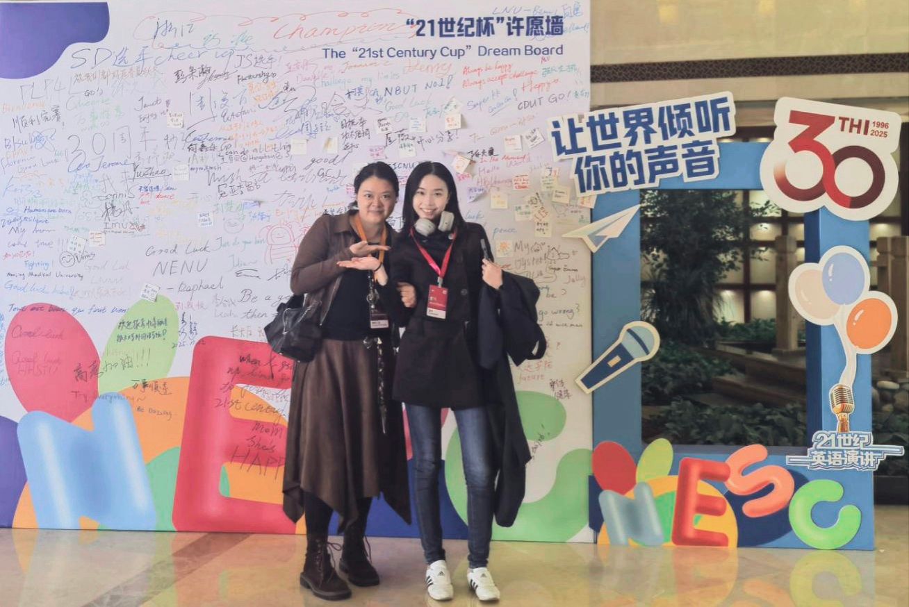 成功的背后离不开师生的通力协作与不懈付出。备赛期间,曾梦凡老师给予邬依宸持续的鼓励与精细化指导,尤其在演讲稿的主题构思、逻辑梳理和语言润色等关键环节倾注大量心血,助力其不断打磨作品、提升表达质感;朱陶老师则全程跟进,从演讲技巧到心态调整给予全方位支持,为选手的稳定发挥保驾护航。
