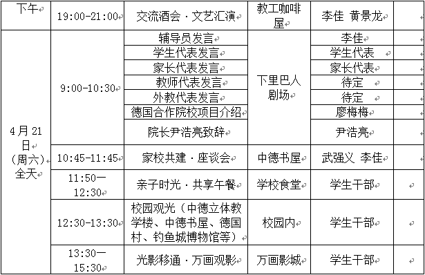 父亲和母亲是如同教师一样的教育者,他们不亚于教师,是富有智慧的人类创造者,是指引孩子进步的旗帜,为了更好地让学生家长们了解学生在校的学习生活情况,增进家庭教育与学校教育的血脉联系,中德应用技术学院决定于2018年4月20日—4月21日举办2016级本科学生家长开放日活动。通过家校互动的形式,让广大家长朋友们了解我校国际化合作办学理念和育人模式,帮助学生更好地成长。本次家长开放日专门面向2016级全体本科学生家长,就出国留学、国外深造等开展宣讲并提供咨询,我们真诚地邀请家长朋友们抽出宝贵的时间,为孩子的未来打造一个高品质的平台。