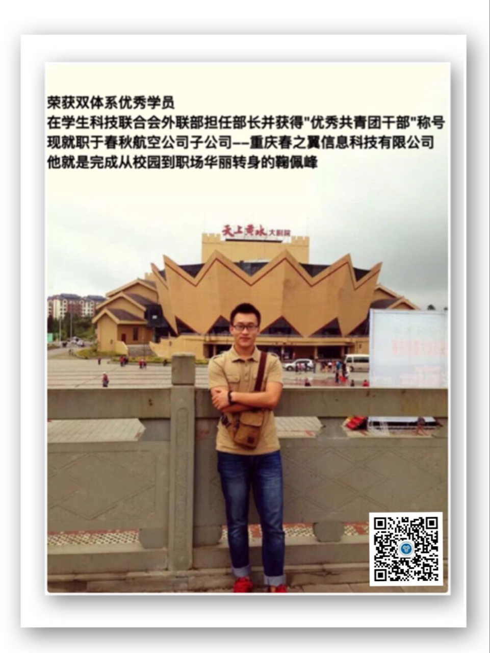现就职于春秋航空公司子公司——重庆春之翼信息科技有限公司,任职研发二部的国旅项目组.NET开发工程师。
