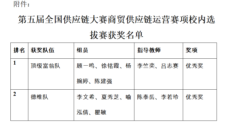 附件:第五届全国供应链大赛商贸供应链运营赛项校内选拔赛获奖名单