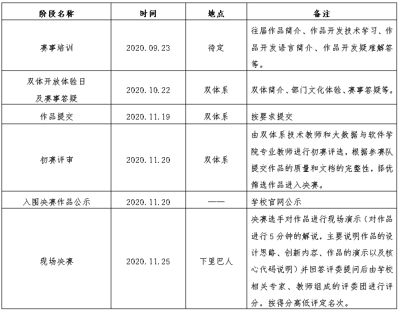 为激发和展示我校学生在计算机应用设计方面的动手能力,培养学生对软件开发的兴趣,增强将理论知识转为实际软件产品的能力,同时进一步做好我校软件人才的储备工作,特举办第九届“双体杯”大学生计算机应用大赛。