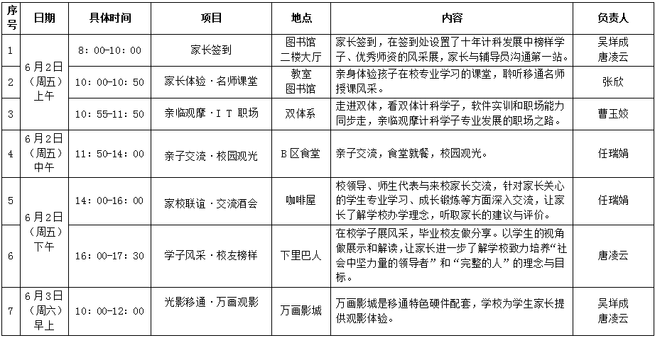 计算机科学系家长开放日日程安排表