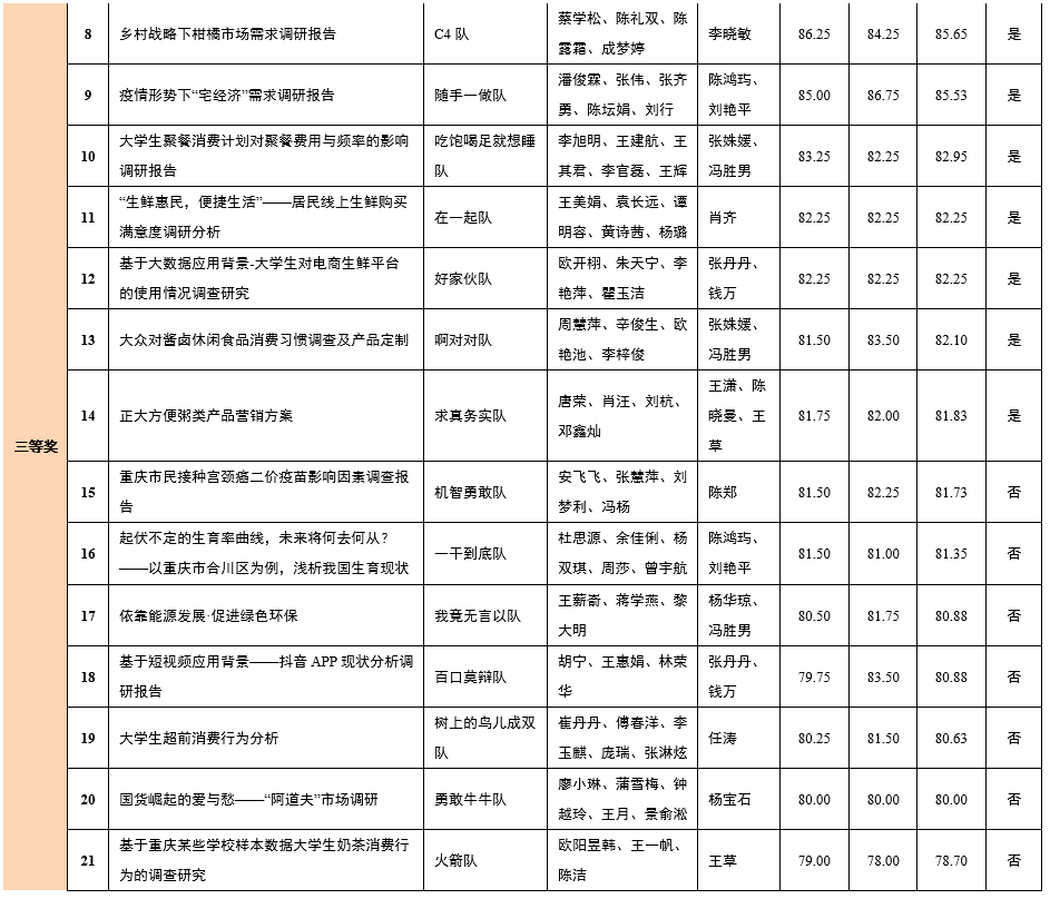 “正大杯”第十二届全国大学生市场调查与分析大赛重庆移通学院校赛获奖名单