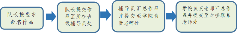参赛作品文件命名:队长所在学院+队长姓名+作品名称,并附上50-150字的作品设计说明。(注:平面设计、文案策划采用PDF格式提交;视频动画采用MP4格式提交。)