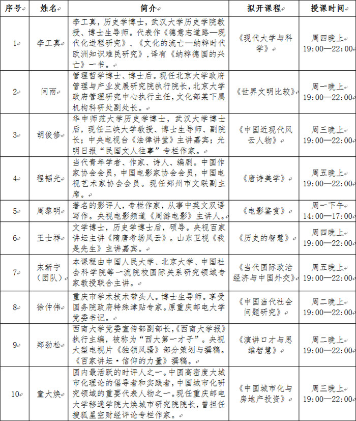 2017—2018学年第二学期“名师选修课”授课计划